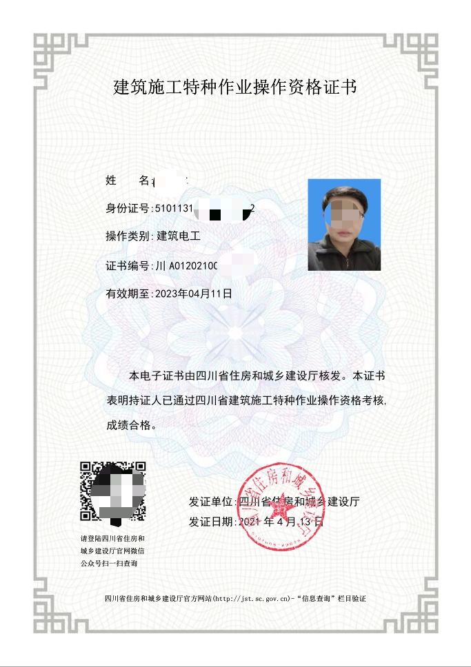 電工證,焊工證,登高架設證,高處安裝維護拆除證,電力電纜證,繼電保護證,電氣實驗證,防爆電器作業證,制冷工證,主要負責人證,安全管理人員證